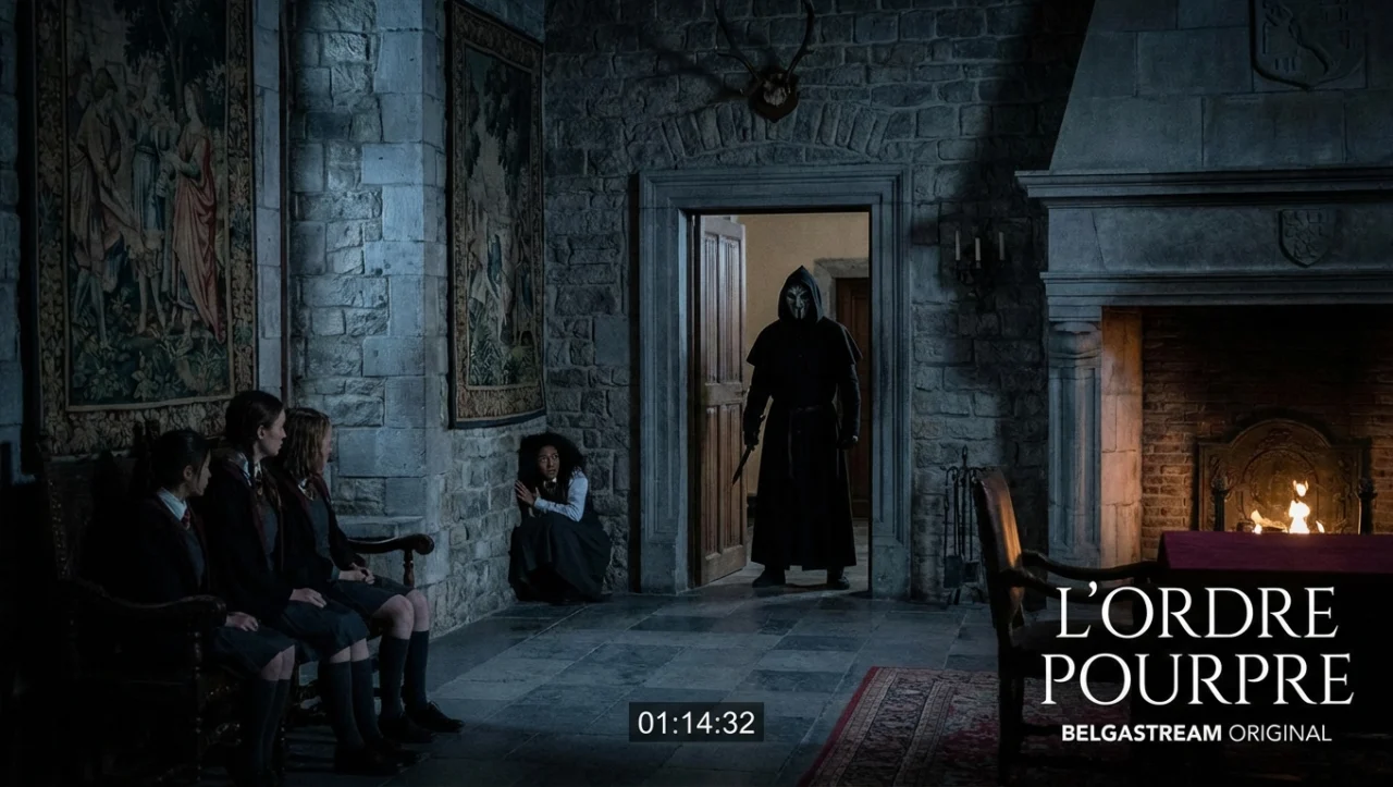 “L’Ordre Pourpre” est un thriller/slasher belge réalisé par Thomas Ancora, qui marque les débuts cinématographiques de la chanteuse Mentissa. Un an après un baptême étudiant tragique, un groupe d’étudiants est traqué par un mystérieux tueur. Le tournage se déroule dans le prestigieux Château de Modave, transformé en internat pour le film.