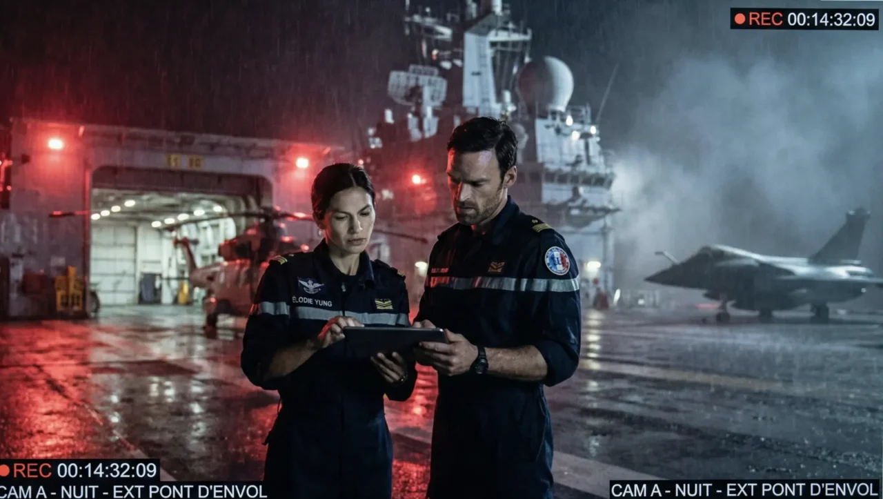 L’intrigue suit l’enquête d’un officier militaire dépêché en urgence à bord du porte-avions alors qu’une femme de l’équipage est retrouvée morte et qu’une autre disparaît, transformant cette ville flottante de 2000 marins en piège mortel. Tournée en partie sur le véritable porte-avions à Toulon. Diffusion prévue en 2026.